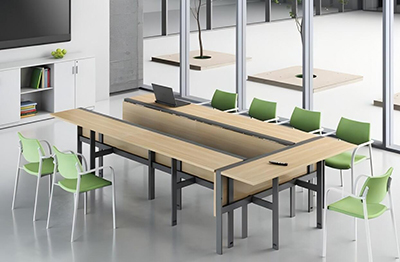 桌子可折疊(展開后為一個小會議桌,折疊后為一張培訓桌)